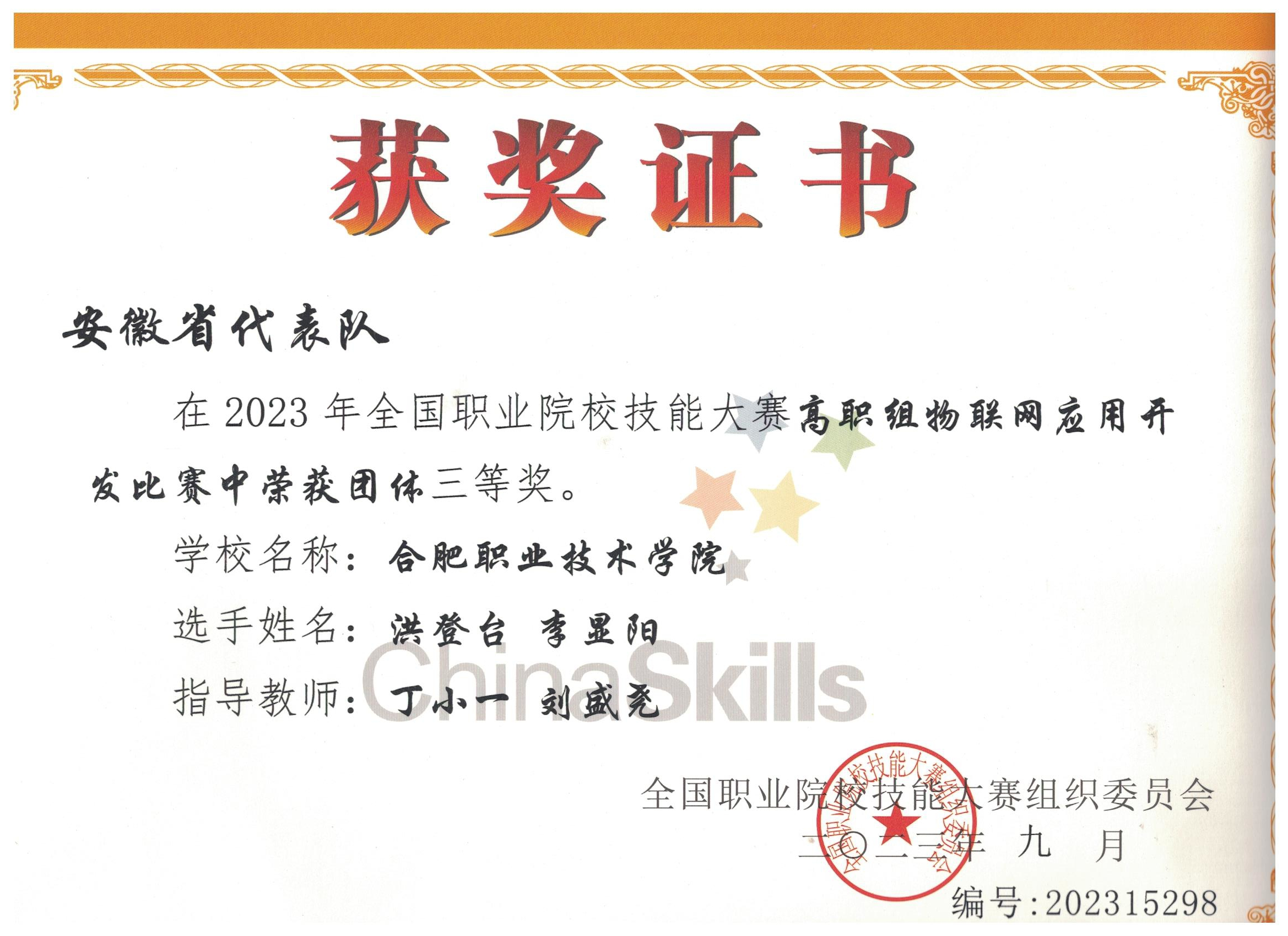 【专业建设成果】2019年7月,经教育部认定,获批国家级的物联网“双师型”教师培训基地。自2015年至今连续9年(2020年疫情中断一次)参加全国职业院校物联网应用开发赛项,获得一等奖一次、二等奖四次、三等奖三次,2022年参加首届世界职业院校技能大赛物联网应用技术赛项获优胜奖,并多次参加安徽省单片机及嵌入式比赛、全国大学生智能汽车竞赛安徽省物联网创新赛等,均取得良好成绩。