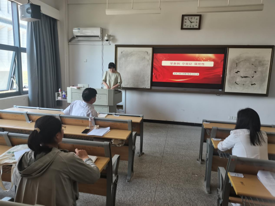 为深入学习贯彻习近平总书记关于党纪学习教育的重要讲话和重要指示精神,深入学习领会新修订的《中国共产党纪律处分条例》,推动党纪学习教育走深走实,5月28日下午,ac米兰官网中文网站第五党支部开展了五月份主题党日活动暨党纪学习教育专题党课。此次党课由支部书记王慧玲主讲,主题为“学条例 守党纪 强党性”。