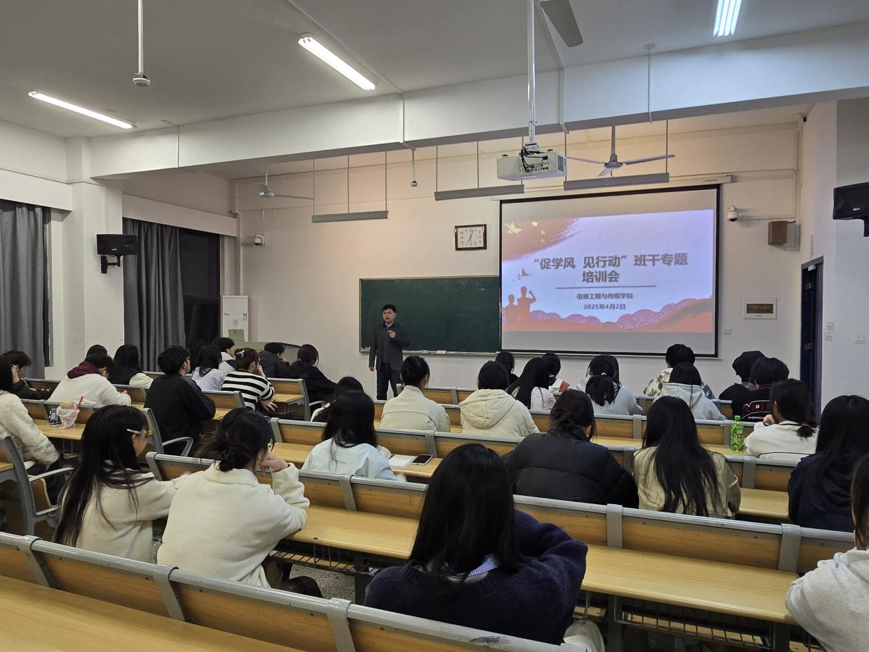 为进一步加强学风建设,营造积极向上、严谨认真的学习氛围,充分发挥学生干部在学风建设中的模范带头作用,ac米兰官网中文网站学院于4月2日召开了“促学风,见行动”班干专题培训会。本次培训会由学院党总支副书记(主持工作)尹仕果主讲,在校班级班长和团支书等学生骨干积极参与了此次培训。