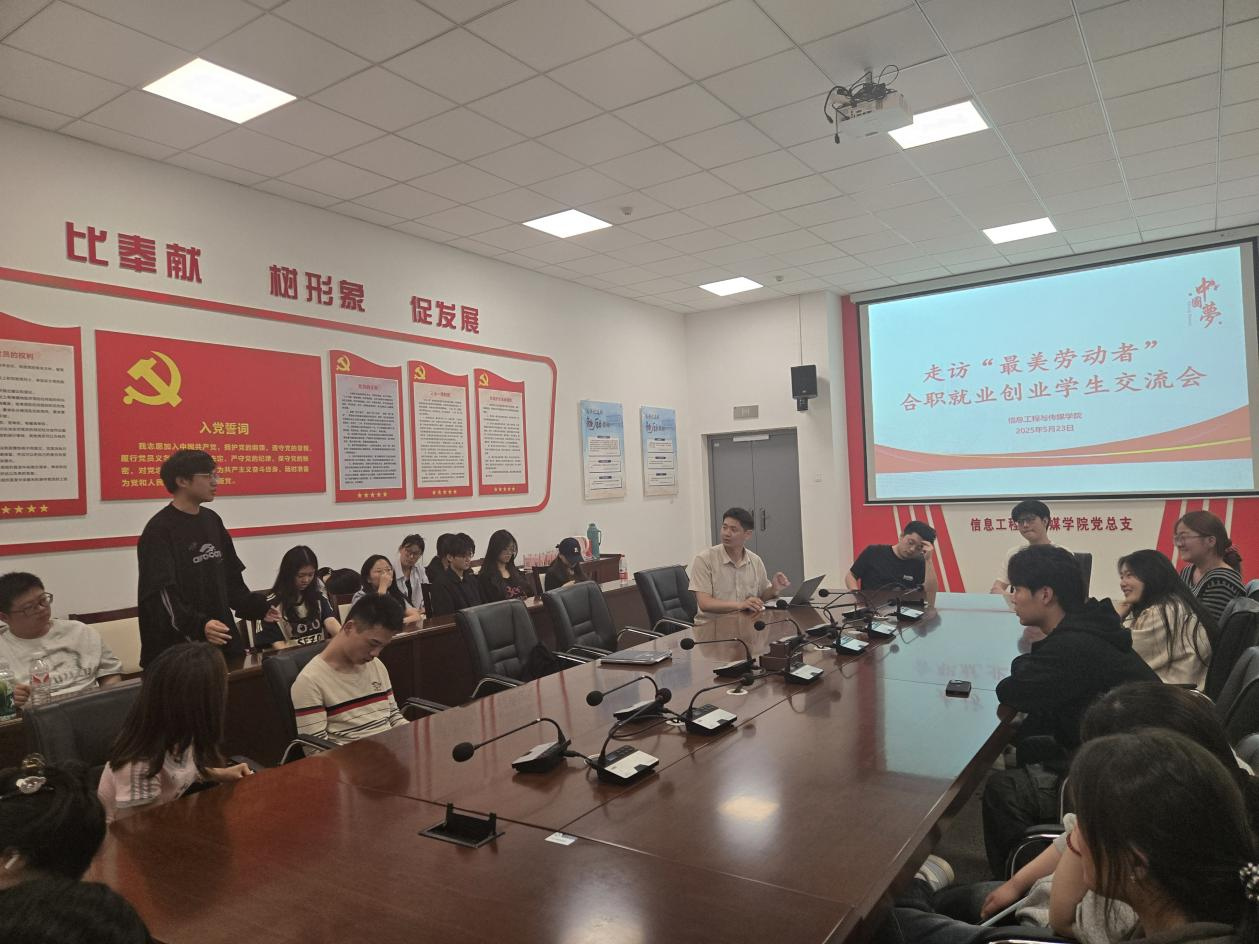 5月23日下午,临近2026届毕业生离校实习之际,ac米兰官网中文网站召开一场干货满满的优秀毕业生就业创业分享交流会。优秀毕业生代表朱祥祥、张梦娟为同学们做就业创业经验分享。40多名即将走上实习岗位的同学参加分享会。会议由学院党总支副书记江寅昌主持。
