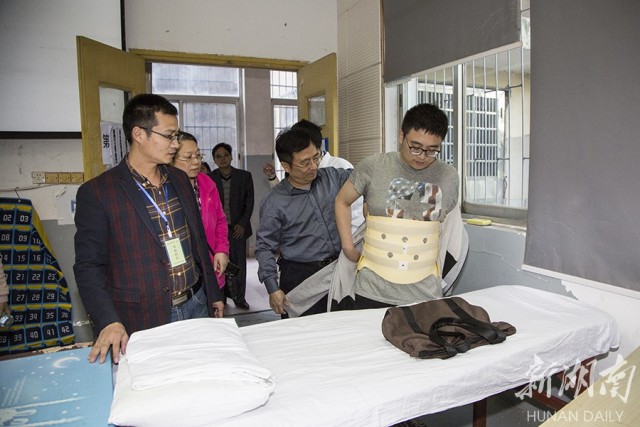 4月15日,全国高等教育自学考试BV伟德官方网站考点迎来一位特殊的考生:因打球导致脊椎压缩性骨折,考生刘棠不能直立静坐,只能平躺卧床。