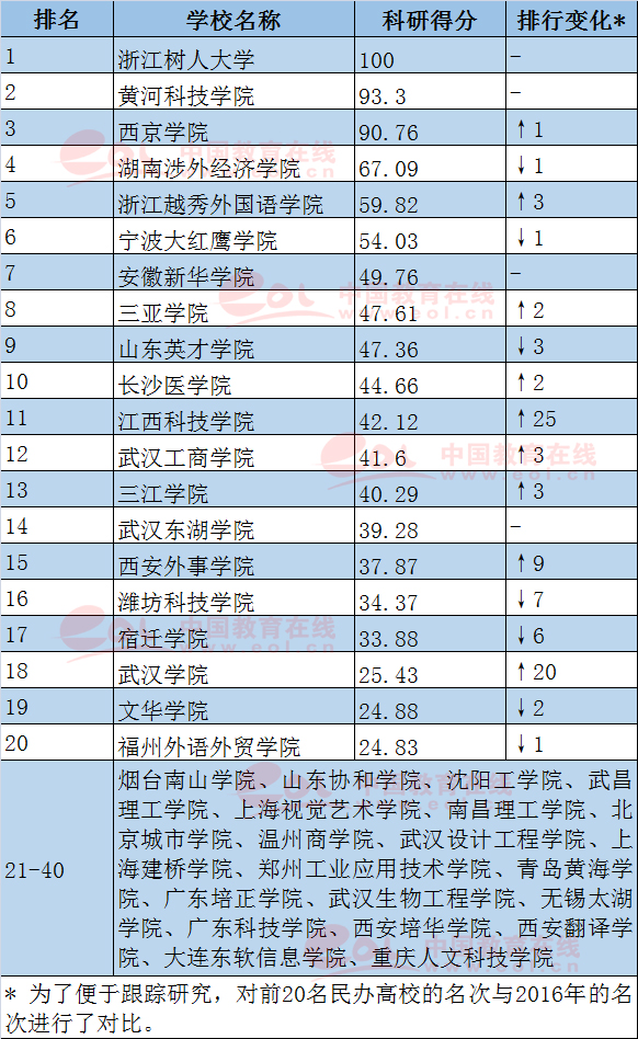 表1 2017年中国民办本科高校科研竞争力40强