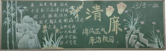 “清廉”对大学生而言,其基本要求是遵纪守法、诚实守信、勤俭节约、远离腐败、遵守职业道德等。通过学习与绘制此次黑板报,相信学生们一定能坚定信念,始终自省自重,严守法纪,做一个一心为公、一身正气的追梦者。