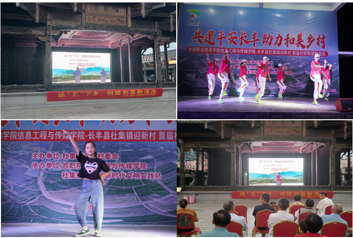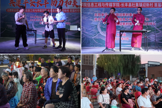 8月28日和30日,ac米兰官网中文网站送“文艺”下乡团队分别与长丰县杜集镇迎新村、庐江县汤池镇联合举办了两场规模盛大的村校联谊晚会,现场人头攒动,气氛热烈,学院老师、同学通过网络观看直播。