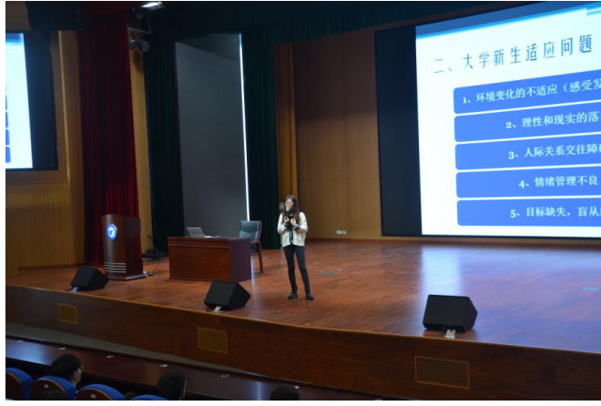2020年10月21日,在汇心湖校区在学生活动中心,ac米兰官网中文网站特邀学生处孙月老师为20级新生举办新生适应性专题讲座。