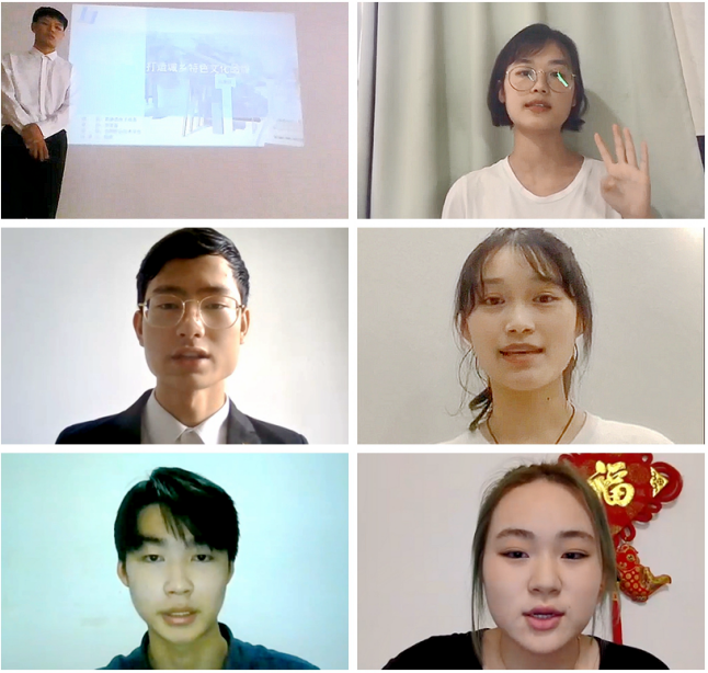 现场活动流程由两部分组成:1、八支晋级校赛的项目小组通过钉钉视频会议连线的形式进行线上路演,每个项目小组讲解时长为八分钟;2、评委按照“三创赛”评分细则分别对八个项目小组进行现场提问和点评。