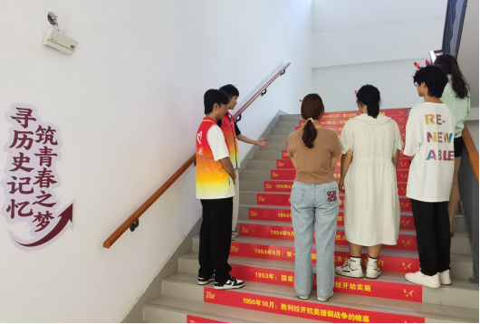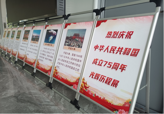 举办光辉历程主题展。为了更好地营造国庆氛围,9月25日至10月12日,学院在信息楼北门设置祖国光辉历程主题展,在楼梯台阶张贴文化标语,寻找历史记忆、筑牢青春之梦。从开国大典到改革开放,从香港回归到北京奥运会,从党的十八大到全面建成小康社会,一幅幅图片、一条条标语以时间为轴向各位同学诉说着中华人民共和国成立75年来的伟大历程和辉煌成就。