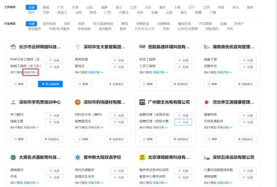 第三步:根据求职意向,查看单位岗位详情,投递简历