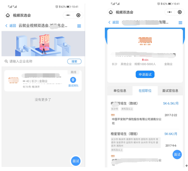 2.毕业生端:查看用人单位及岗位信息,投递简历、招聘会当天即时交流及视频面试等。