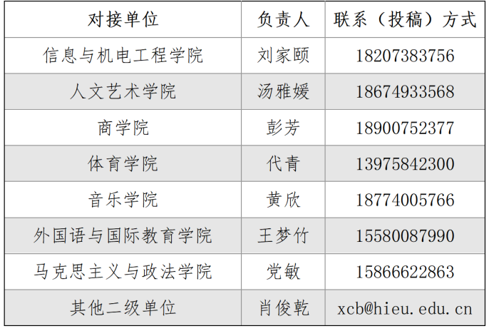 各对接单位负责人要对报名作品择优挑选,于2026年1月15日将报送材料和《“好评中国·湖南篇”网络评论大赛作品汇总表》(见附件)汇总后发送至党委宣传部,文件以“二级单位+网络评论大赛”方式命名,压缩文件内含“未公开发布作品”和“已公开发表的自媒体作品”两个文件夹。(校党委宣传部邮箱xcb@hieu.edu.cn。)