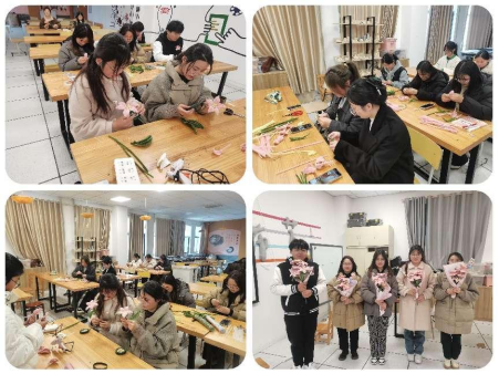 节日前夕,学院艺术原创社、玩艺美学社和非遗文创社的同学们为学院女教师准备了精美的贺卡,并提前做好了手工艺品——绒花。春光明媚的课间,学院爱心公益社的同学们怀着满心的感激与敬意,手捧着精心制作的花束,步履轻盈地走向那些节日里仍坚守三尺讲台的魅力女神们。花与笑脸交相辉映,这些花不仅是对她们日复一日、年复一年辛勤工作的肯定,更是对她们无私奉献、默默坚守精神的最高礼赞。