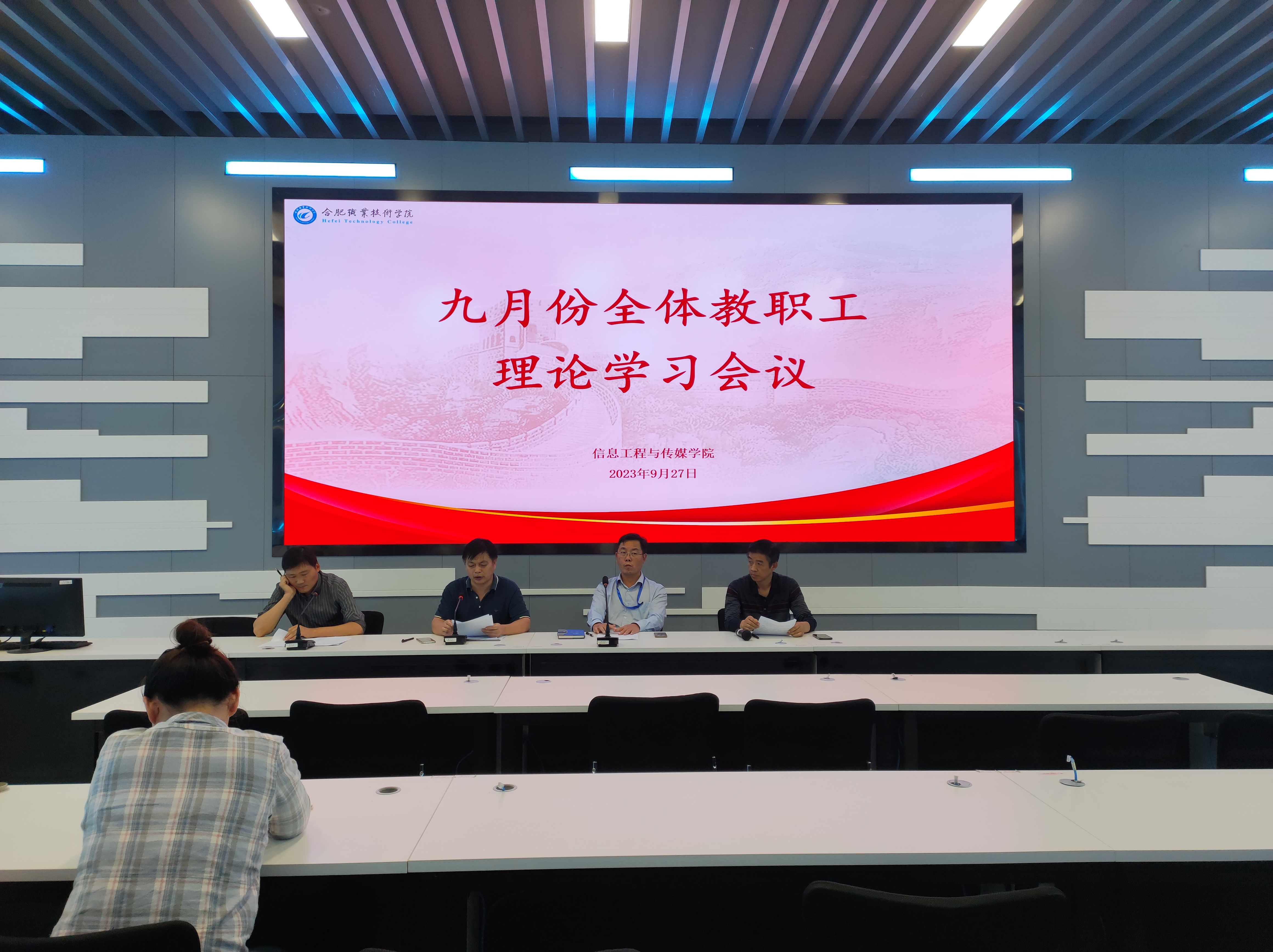 为科学部署第二批学习贯彻习近平新时代中国特色社会主义思想主题教育,高质量、高标准推进学习活动,9月27日,ac米兰官网中文网站在轨道楼4楼召开九月份全体教职工理论学习会议,全体教职工参加会议,会议由学院党总支副书记刘泽发主持。