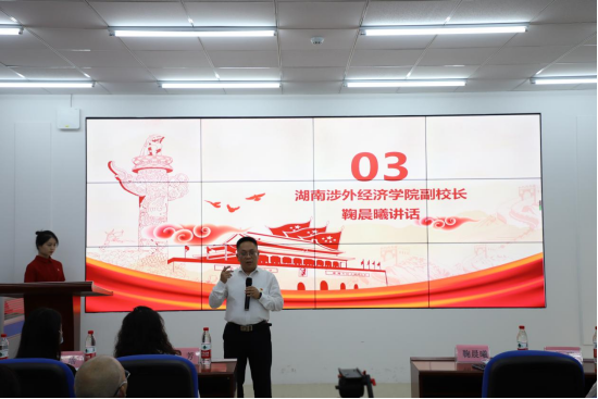 校党委委员、副校长鞠晨曦,校党委组织部部长李琼、宣传部部长戴薇,学生工作部部长邝继红,商学院党总支书记李向明、副书记彭小平,湖南日报报刊发行管理党支部书记、湖南日报报刊发行中心主任、湖南日报文旅集团副总经理黄芳女士以及湖南日报朗读者主题活动执行团队成员、商学院教师、志愿者代表等出席本次会议。