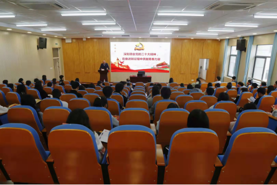 报告会上,杨念书记重点围绕党的二十大的主题和主要成果、过去5年的工作和新时代10年的伟大变革及其里程碑意义、不断开辟马克思主义中国化时代化的新境界、中国式现代化、全面建设社会主义现代化国家的目标和任务、坚持党的全面领导和全面从严治党、应对风险挑战、在奋进新征程中贡献青春力量等8个方面,对党的二十大精神进行全面系统深入的宣讲解读。