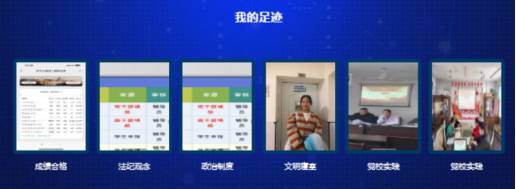 五是我的足迹记录成长。“我的足迹”会记录学生所有加分项、减分项申报的材料明细,包括学生提交的荣誉证书、活动图片、证明等。
