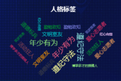 四是人格标签重在激励。人格标签功能从不同角度对测评结果进行展示,学生在某项或几项测评指标获得加分后,不同的加分数值对应不同大小色彩字体的人格标签。分值越高,人格标签字号就越大;