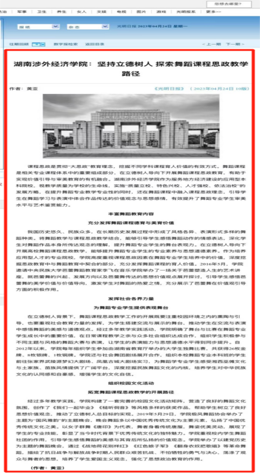 课程思政是贯彻“大思政”教育理念,挖掘不同学科课程育人价值的有效方式。舞蹈课程是相关专业课程体系中的重要组成部分,在立德树人导向下开展舞蹈课程思政教育,有助于实现价值引导与审美教育的有机融合。伟德官网音乐学院副院长兼舞蹈系主任黄亚关于舞蹈课程融入思政教学的思考和实践,获得了社会各界以及主流媒体的高度认可。