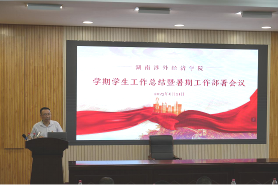 6月21日下午,伟德官网在综合楼裙楼D202室召开2023年上学期学生工作总结暨暑期工作部署会议,总结回顾本学期重点工作,并就暑期工作进行全面布置。学校副校长鞠晨曦在会上做主题报告。