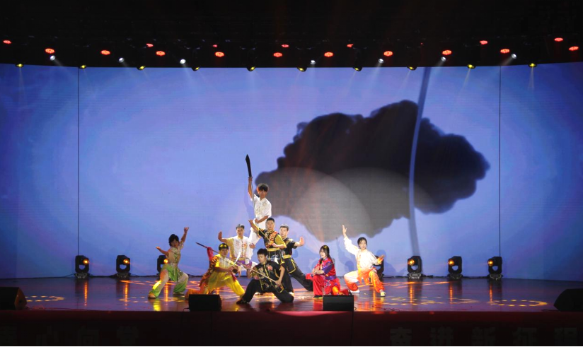 《凌云志》武术表演,行云流水,霸气十足,一气呵成。其形如林,其疾如风。动静相兼,刚柔相济。似实现了我们孩提时的梦想,让自己像蝴蝶一样穿梭,陶醉于芬芳。像海燕一样奋进,勇敢的搏击风浪。青春当立凌云志,胸有山河天地宽。