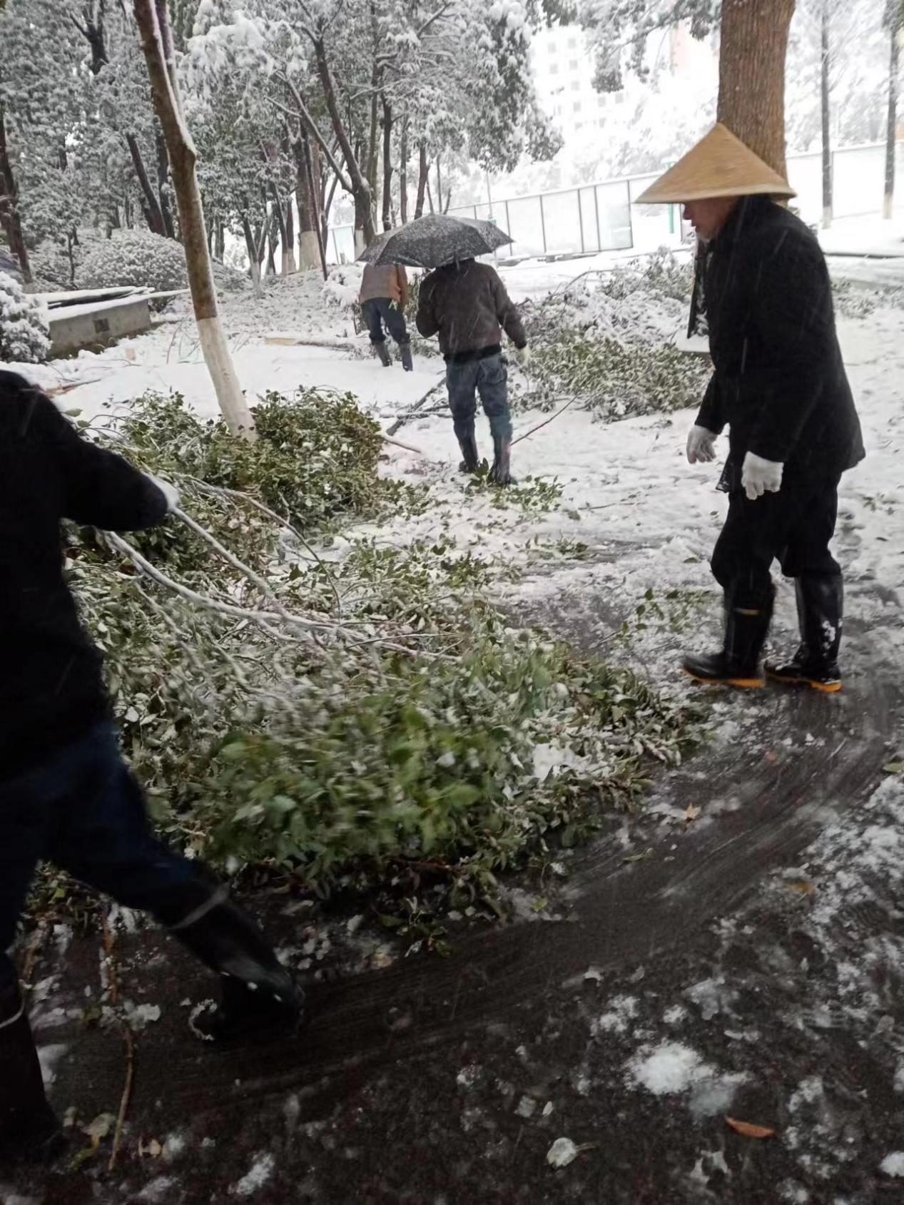 为贯彻落实《关于做好低温雨雪冰冻天气防范应对工作的紧急通知》文件精神,近日,伟德官网部署后勤处积极开展校园防雪灾和防冻害工作,组织大量人力物力,对冰雪覆盖的校园道路及时进行清理,除冰面积5000余平方。冰面消除之后,进一步组织3辆清运车辆,及时清运因冰雪导致的断裂树枝,累计清运30余车,确保校园平安度过了冰雪极端天气。