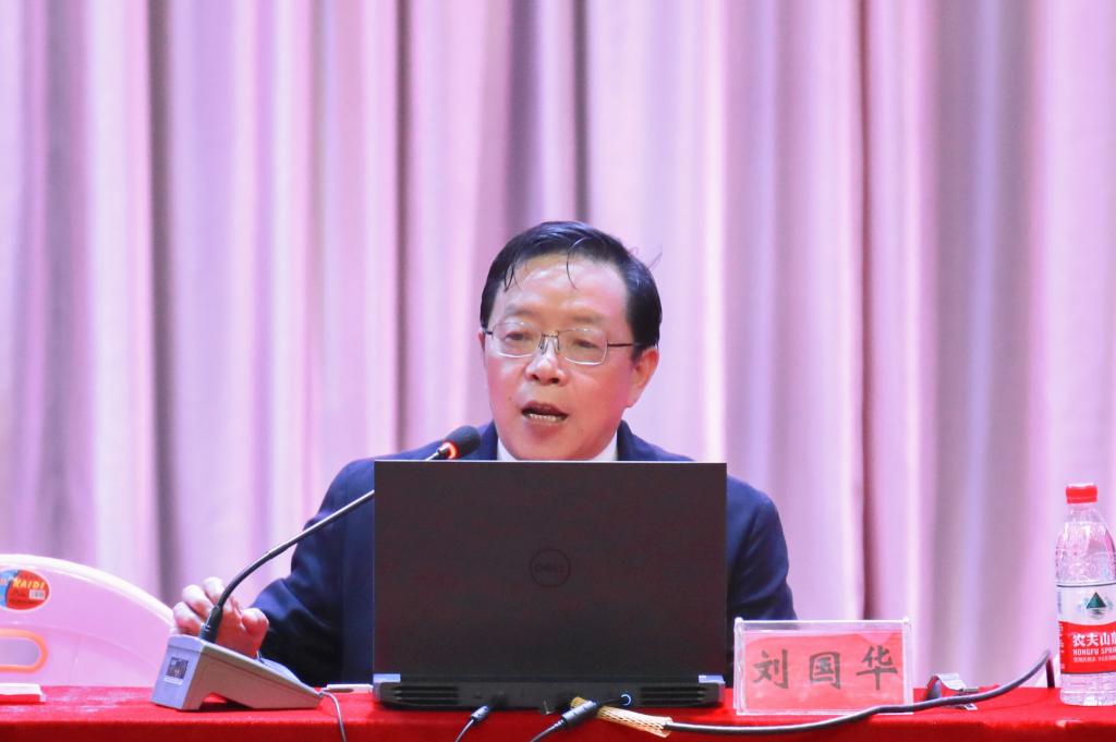 鞠晨曦副校长总结讲话。他说,刘国华教授结合时代背景,对习近平新时代中国特色社会主义思想作了系统阐述,报告见解精辟、讲解精彩,内容丰富、力量强大,让全体参训师生深受启发和鼓舞,坚定了大家奋进新征程、建功新时代、坚定不移跟党走的信心和决心。