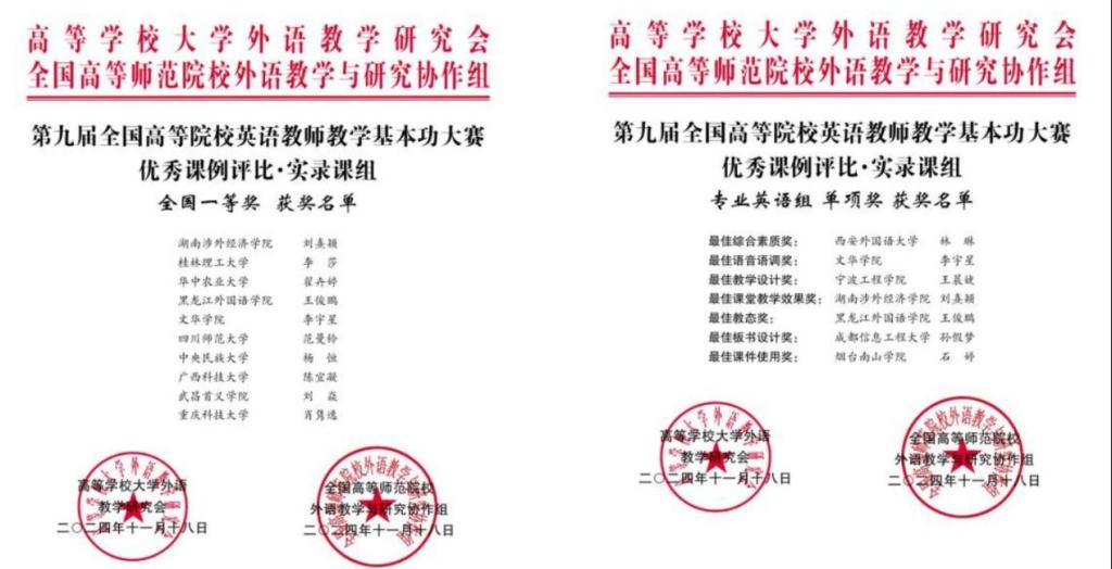 11月15日-18日,由高等学校大学外语教学研究会和全国高等师范院校外语教学与研究协作组共同主办的第九届全国高等院校英语教师教学基本功大赛圆满落幕。伟德官网外国语与国际教育学院教师刘熹颖在优秀课例评比.实录课项目中荣获湖南省特等奖、全国一等奖第一名,并获得个人单项奖一项。