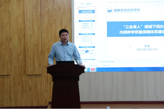 教学质量监控与评估中心主任李卓指出,应将立德树人融入各教学环节的质量标准,形成规范和行为准则;构建具有涉外特色的教学督导工作机制健全由课程实验、实验课程、集中实训、专业实习、毕业论文(设计)以及创新训练活动等组成实践教学育人体系,强化质量保障体系闭环运行。