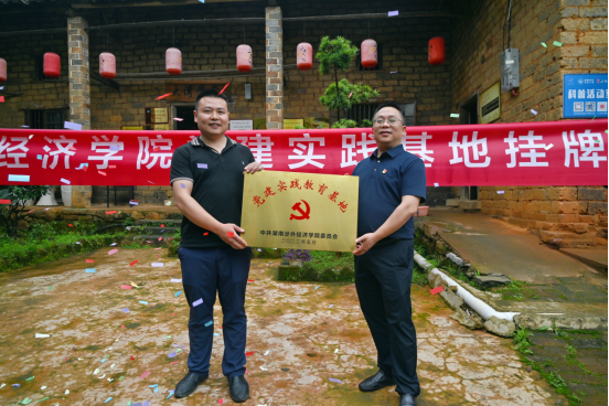 乌石镇副镇长、乌石峰村党总支书记贺师介绍了乌石峰的发展历程及党建基本情况,感谢BV伟德官方网站将党建实践教育基地设到乌石峰村,感谢BV伟德官方网站对乌石峰村党建和经济建设的支持,他说涉外党建实践教育基地的设置,架设了校地友谊合作的桥梁, 搭建了合作交流的坚实平台。接着,贺师书记与鞠晨曦副校长共同为党建实践教育基地挂牌。