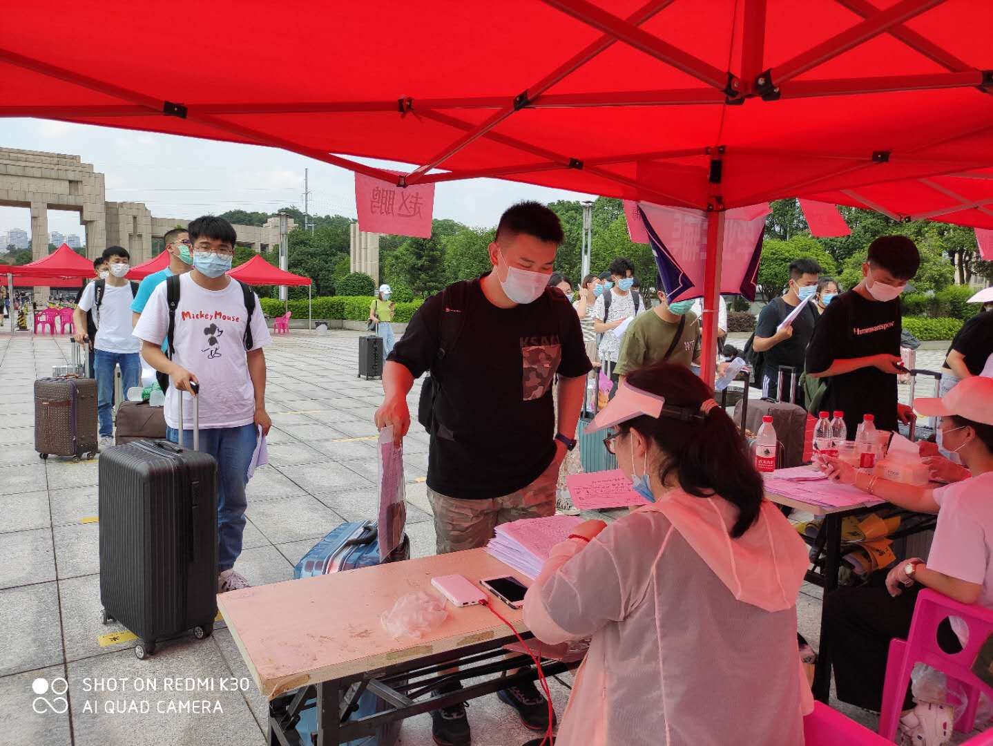 6月6日上午7时30分,伟德官网北门广场报名点和南门广场报名点迎来2020年春季开学首批报到学生。在工作人员的引导下,同学们间隔一米有序排队测量体温,接受身份证、居民电子健康码和完美校园出入证的核查。体温正常的学生,由辅导员核查健康承诺书、报到前21日的健康记录卡,发放入寝通知单。体温异常者,则立即由工作人员引导至临时观测点,再次测量体温。学校各职能部门以及二级学院对学生报到的各个环节高度重视,科学施策、周密部署、层层把关,实行了全程无缝衔接,确保了每个报到环节的工作细致到位。从6月6日、6月7日返校现场来看,学生报到秩序井然、安全高效。