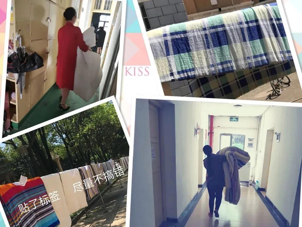“我答应过孩子们,一定不让他们的被子发霉。”四月以来,每到天气放晴,宿管何老师就会来到学校,挨个把同学们的被子晾到外面的晒衣杆上。“天气好的时候,晒半天基本上可以了,被子晒蓬松了再收走放回柜子里,这样就不怕受潮了。”何老师说。为了不把同学们的被子弄混,她还自制了小标签,挨个夹在被子上。