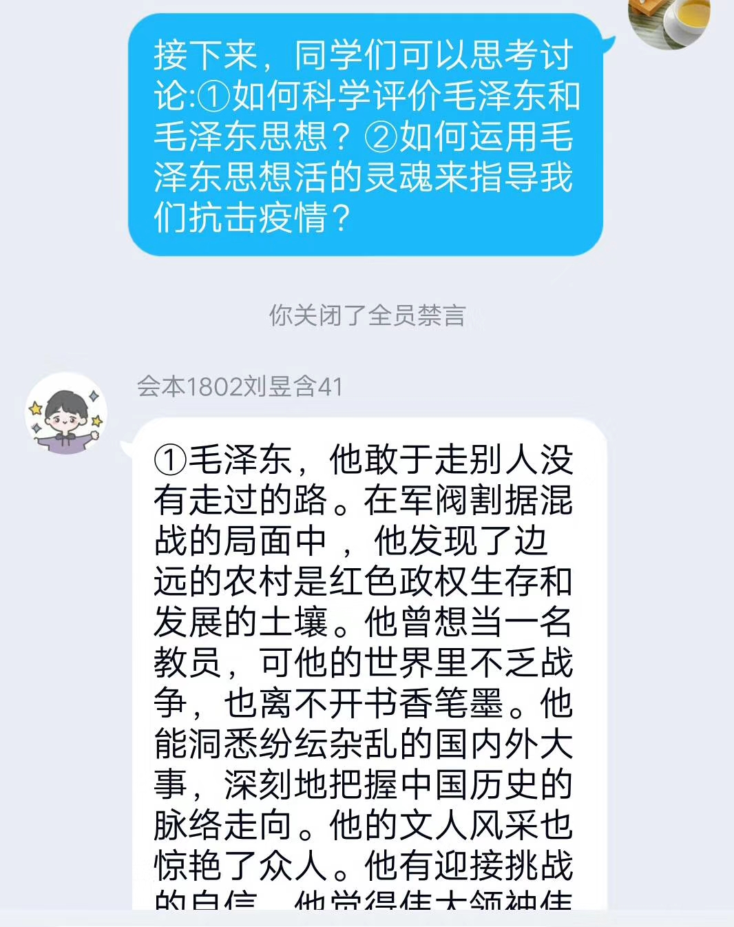 姜超凡老师及时收集学生意见和建议