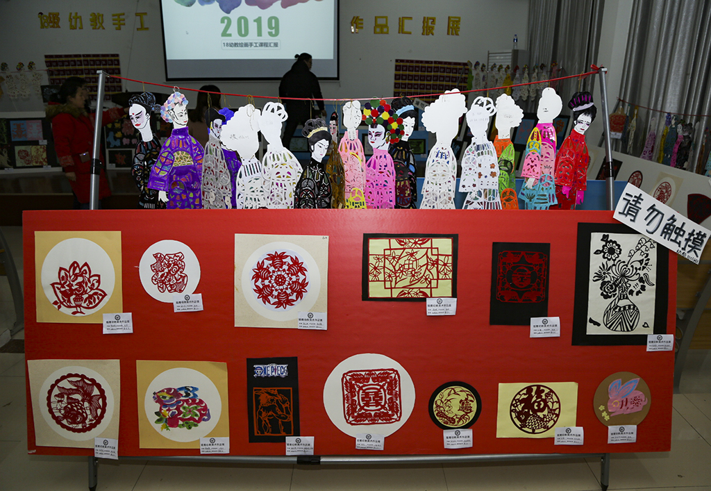 12月24日—27日,湖南猎鹰技工学校2018级幼教专业手工作品汇报成果展在十二教108教室举行。本次展览汇集了280多种不同类型的剪纸作品,包含传统单色剪纸、套色剪纸、染色剪纸以及综合表现类剪纸等,涉及人物肖像、花鸟鱼虫、福禄寿喜吉祥纹等多种样式。栩栩如生的纸猴、细致庄重的书法、跃然纸上的古典美人、南方传统纸影等,都惟妙惟肖、栩栩如生。同学们用一双双巧手、一颗颗慧心,一笔一刀地剪在纸上,在传承中华传统文化的同时,也向外界展示着自身独具的美与魅力。此次作品展将作为18级幼教专业学生本学期美术手工课程期末成绩评定的依据。