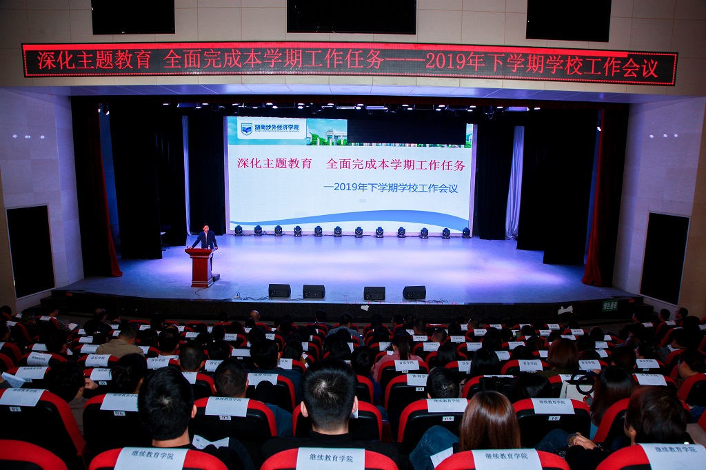 11月15日下午2:30,伟德官网2019年下学期工作会议在音乐厅召开。王耀中校长以《深化主题教育 全面完成本学期工作任务》为题作讲话,陈斌副校长主持会议。全校科级以上干部和全体辅导员参加会议。