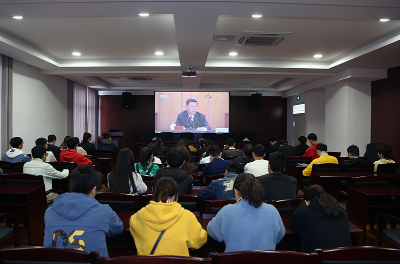 4月30日上午,纪念五四运动100周年大会在人民大会堂举行,中共中央总书记、国家主席、中央军委主席习近平出席大会并发表重要讲话。伟德官网团委组织团学骨干在新综合楼四楼会议室观看了会议的现场直播,学校广大师生也通过电视、互联网、手机客户端等方式收听收看了习近平总书记的重要讲话。