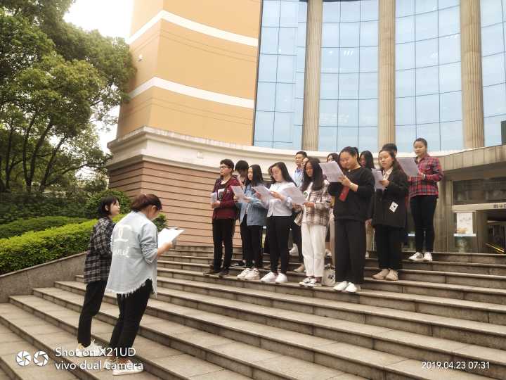 4月22日-4月26日的清晨,在图书馆前坪,一群莘莘学子面对晨曦,声情并茂地诵读着《面朝大海春暖花开》、《再别康桥》、《你是人间四月天——硖石之伤》、《前赤壁赋》、《致橡树》、《岳阳楼记》等经典美文,为春意盎然的校园增添了浓浓的书香。