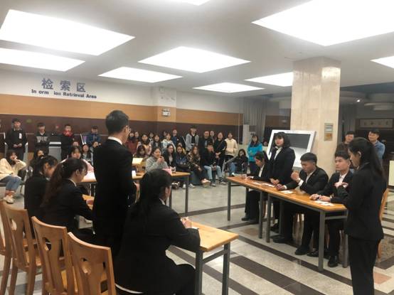 4月11日晚,由学校演讲协会承办的阅读推广系列活动之“在图书馆占座到底应不应该”主题辩论赛在图书馆大厅举行。辩论赛吸引了众多读者的围观,正反双方精彩的辩论引来了阵阵喝彩,也让围观读者清晰地认识到图书馆资源属于公共资源,每个在校学生都有平等使用的权利,“占而不用”的不文明行为是我们坚决要抵制的。图书馆呼吁广大读者,做文明学生,做高雅读书人,一起维护图书馆良好的学习秩序和学习氛围。