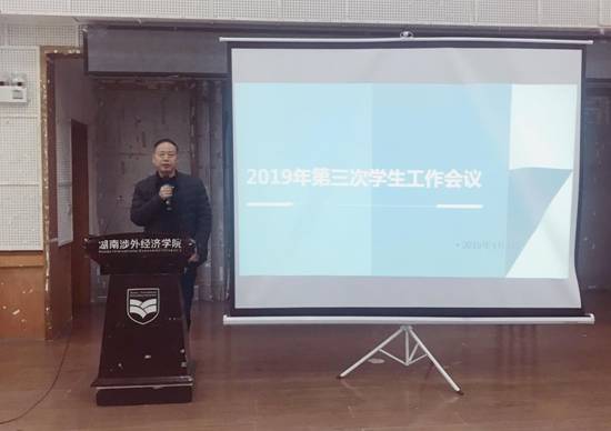 4月3日上午,2019年第三次学生工作会议在学术讲堂召开。会议通报了近期工作中存在的问题,传达贯彻了学校扫黑除恶专项斗争部署会议精神,并对下阶段工作进行了部署和强调。学生工作处全体成员、各二级学院党总支书记、学工干事、辅导员以及学生公寓园区管委会人员参加了会议,鞠晨曦副校长出席了本次会议,会议由学生工作处邝继红处长主持。
