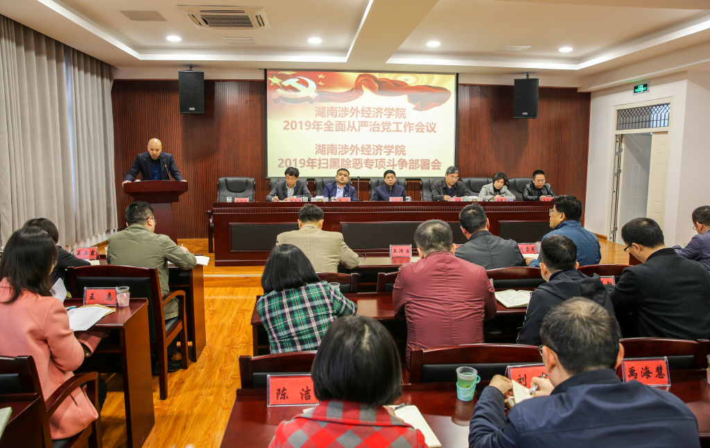 4月2日下午,伟德官网2019年全面从严治党工作会议和扫黑除恶专项斗争部署会在新综合楼四楼会议室召开。全体校领导、中层干部和纪检联络员参加会议。汪东明副校长主持会议。