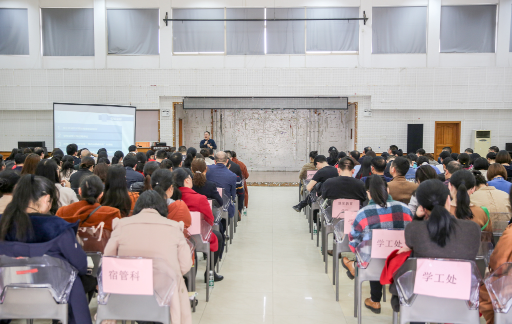 “心理育人是思想政治工作的重要内容和关键环节之一。”鞠晨曦副校长强调了大学生心理健康教育与危机干预工作的重要性,他说,大学生心理问题,要将情绪管理与医学治疗相结合,辅导员在与学生相处的过程中,要将对学生的关注、关爱摆在首位,要善于在日常的情绪观察与常识判断中,捕捉敏感信息,这样才能对学生的心理问题做到早发现、早反映、早介入。“勤下寝室、下堂查课、多与学生聊天谈心,是做好辅导员的三项基本工作”,鞠晨曦副校长强调,辅导员一定要深入了解学生的各种状态。最后,鞠晨曦副校长对学工系统的团队建设、作风建设、年级组工作以及园区管理等作了说明。