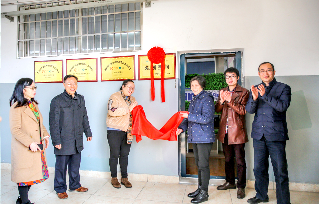 白解红副校长代表学校与粤嵌公司代表共同揭牌,粤嵌公司为学校建设众创空间,提供结合企业实际需求的创新创业教育资源,双方将开展包括专业、课程、师资、项目申报、实验、实习、实训、就业等领域的长期合作。
