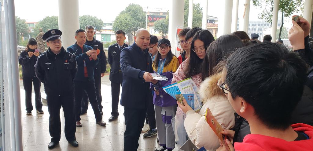 3月5日上午,汪东明副校长带领安全保卫处相关人员,会同麓谷派出所李钢所长及干警一行10余人,在伟德官网教学楼周边立起醒目的宣传板,向来往学生发放宣传资料,认真负责地为防范网络电信诈骗“摆摊设点”。