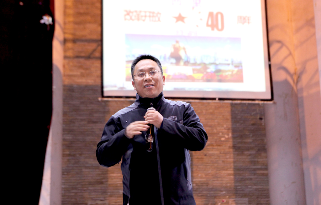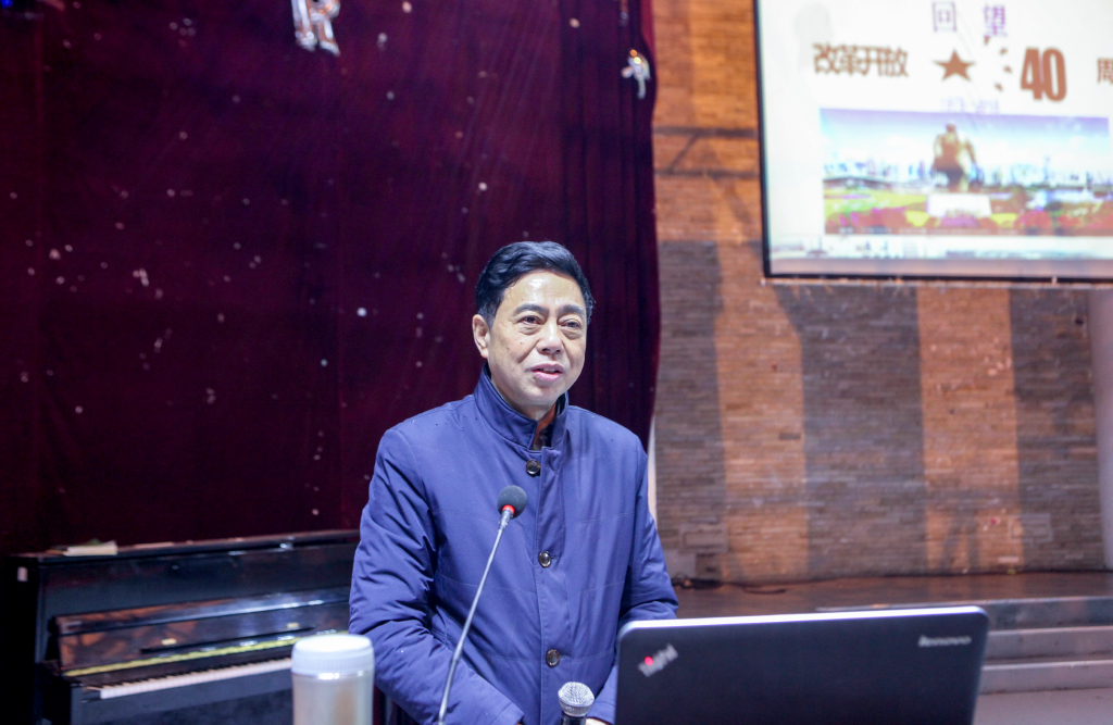 “1978年,在邓小平先生倡导下,以中共十一届三中全会为标志,中国开启了改革开放历史征程。从农村到城市,从试点到推广,从经济体制改革到全面深化改革,40年众志成城,40年砥砺奋进,40年春风化雨,中国人民用双手书写了国家和民族发展的壮丽史诗。”授课开篇,王耀中校长引用习近平主席在博鳌亚洲论坛2018年年会开幕式主旨演讲中的一句话对我国的改革开放作了精辟概括。随后,王耀中校长从“改革开放的时代背景”、“改革开放的艰难历程和辉煌成就”、“将改革开放进行到底”三个方面,结合自己的亲身经历和感受,为大家鲜活地展示了在这不平凡的40年里中国的变化。大家跟随着他的讲述,不知不觉地走入了当时的时代中,大家忧心着当时落后的生产力,也钦佩着安徽凤阳小岗村民签订包干合同的勇气,大家为邓小平同志的睿智和远见而振奋,也为党中央推行改革开放的魄力和坚持而喝彩。四十年的改革开放,如今,我们的祖国完成了从封闭型经济弱国到开放型全球经济大国的伟大转折,完成了从贫穷到温饱到整体小康的跨越式转变,更是获得了从世界舞台边缘日益走近了世界舞台中央的历史性提升,这些辉煌成就,让大家都倍感骄傲。结合翔实的数据,通过对国内和国际形势的精准分析,王耀中校长告诉大家,我国还将坚定不移全面深化改革,以更大的力度推进对外开放。正如习近平总书记在2018年的新年贺词中所说的:我们要以庆祝改革开放四十周年为契机,逢山开路,遇水架桥,将改革进行到底!