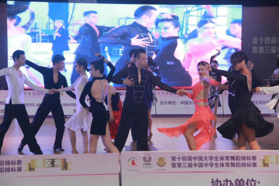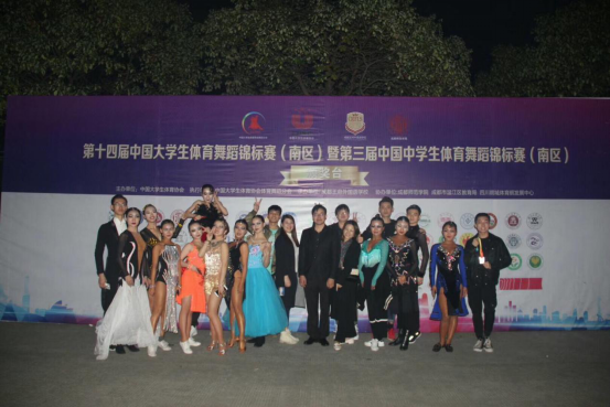 由教育部大学生体育协会、国家体育总局联合主办2018年第十四届中国大学生体育舞蹈竞标赛(南区)比赛于10月26--29日在成都师范学院圆满落幕,参赛单位包括来自成都体育学院、上海体育学院、武汉体育学院、四川传媒学院、西华大学、广东白云学院、湖北文理学院、中南大学、湖南农业大学、华中师范大学、湖南第一师范学院、昆明学院等全国80支高校队伍,近1200余名运动员参加了四个组别的比赛,赛事历时三天。伟德官网派出了由刘雪勇院长任领队,唐红兵老师、刘伟老师任教练及16名体育学院表演系学生组成的体育舞蹈队参加了本次比赛。经过数日比赛,伟德官网代表队不畏强手、奋力拼搏,在本次比赛中获得大学组单人L两项第一名、大学组专业B组两项第二名、大学组单人L两项第三名及其他奖项若干的优异成绩。