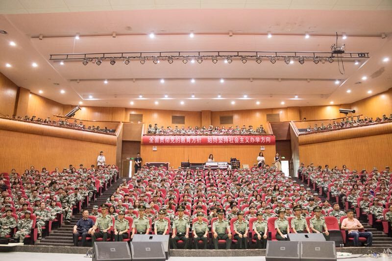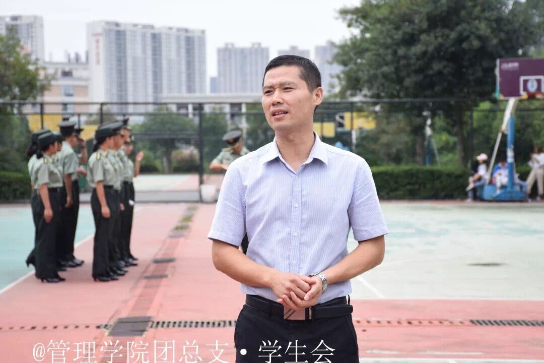管理学院在西门篮球场召开了2018级新生军训动员大会。吴九海书记指出,此次新生军训的目的不仅仅是增强同学们的国防意识和家国情怀,更重要的是希望同学们能够在军训过程中明白四个方面的道理,即热爱学校、尊师敬长、心怀感恩以及关心团队。