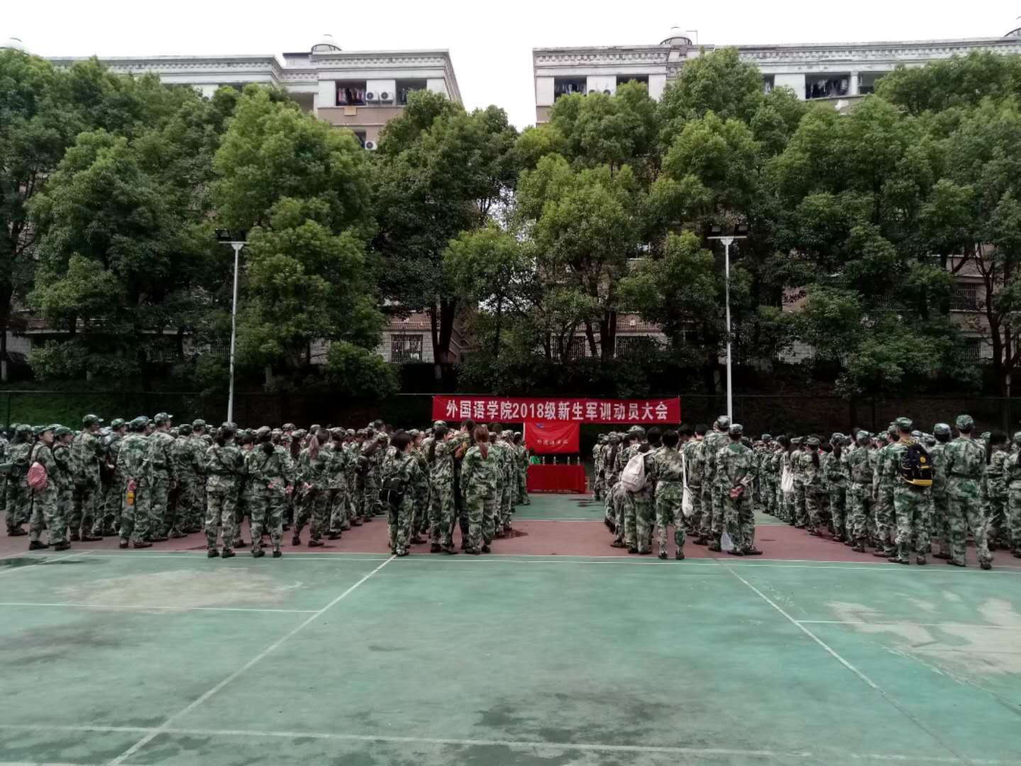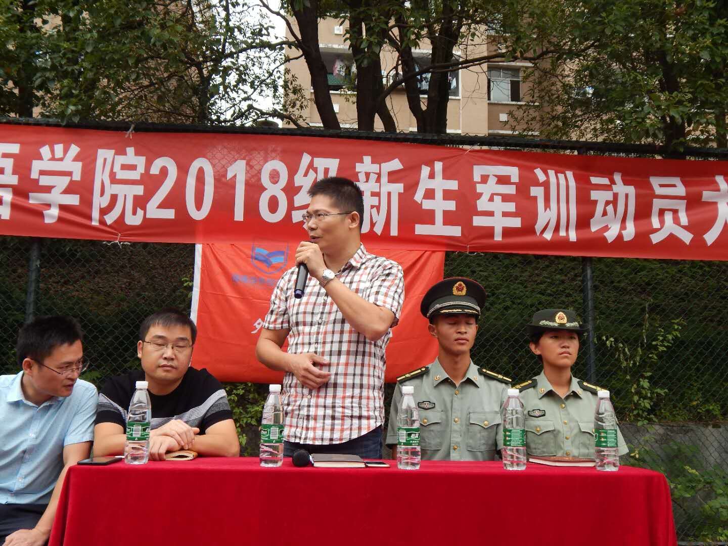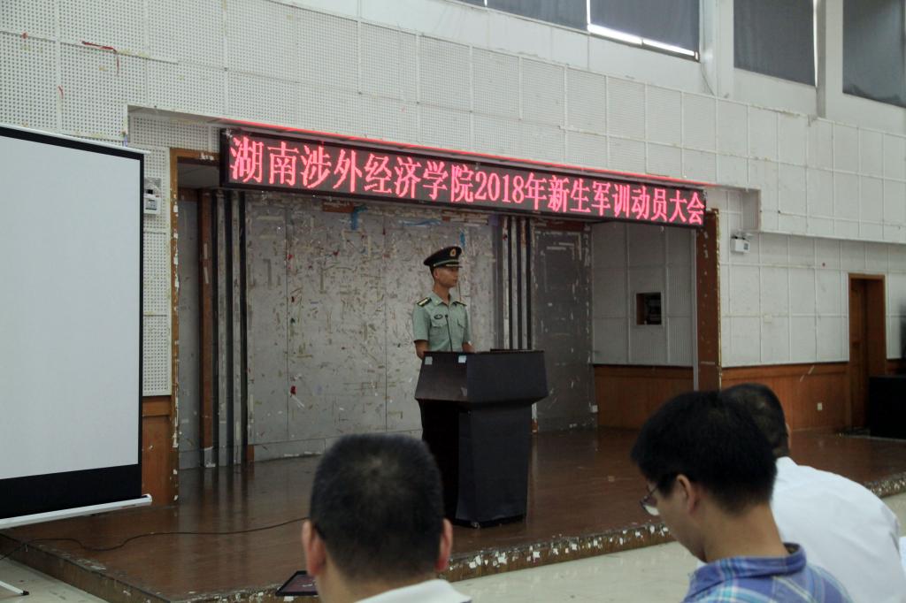 外国语学院举行军训动员大会。李向明书记希望通过军训能提高全体师生的政治思想觉悟,增强集体主义精神和组织纪律观念。同时也希望18级学子端正态度、遵守纪律、令行禁止、刻苦训练,力争荣誉。