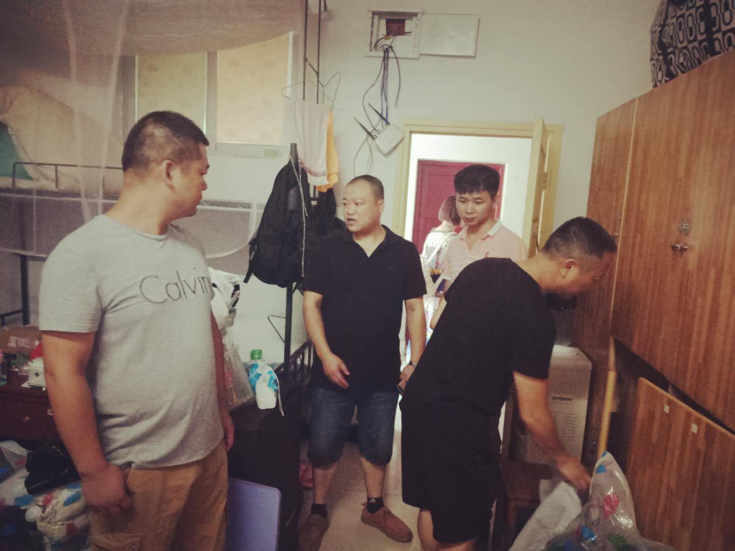 音乐学院党总支书记王治国带领学院全体辅导员到楼栋检查新生房源落实情况,排查楼栋安全隐患以及楼栋卫生情况,并对每间插空的新生宿舍验收一遍,对存在问题的寝室,要求相关辅导员和楼栋管委会妥善解决,为新生顺利入住做好前期铺垫工作。
