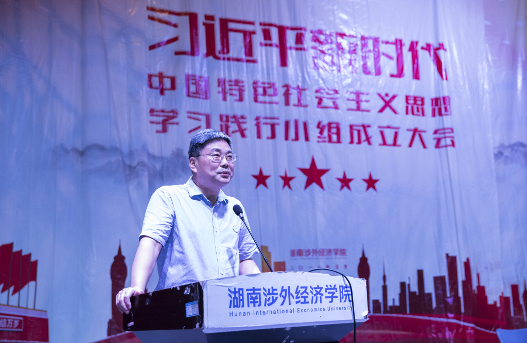 大会上,副校长鞠晨曦发表讲话。他说,思想是一种力量,一种方向,一种行动的指南,习近平新时代中国特色社会主义思想是中国最鲜活的马克思主义,是指导中国走向伟大复兴的最有力的思想保证。今天学校即将成立的这个标志性的、由学生自发成立起来的组织,正是秉承着习近平新时代中国特色社会主义思想这样一个让所有国人引以自豪的思想的导引。成立后的习近平新时代中国特色社会主义思想学习践行小组,将围绕以下几个方面的内容展开学习实践:一是加强学习,领会习近平新时代中国特色社会主义思想的精神内核;二是宣扬传播,用习近平新时代中国特色社会主义思想、社会主义核心价值观、十九大精神去影响身边的人;三是高举党团旗帜,开展系列主题活动;四是将习近平新时代中国特色社会主义思想落实到日常学习生活中去,重点是加强学生的自我管理、自我约束,推进文明创建。
