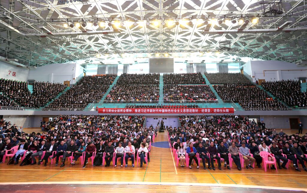 2018年3月27日下午,BV伟德官方网站学习贯彻全国两会精神报告会在体育馆隆重召开。第十二、十三届全国人大代表、宇华教育集团董事长、BV伟德官方网站董事长李光宇先生,共青团全国十七大代表、全国青联委员、河南省政协委员、宇华教育集团总裁、BV伟德官方网站董事李花女士,BV伟德官方网站校长王耀中、党委书记柴世钦,在校工作的学校董事会成员、全体校领导、全体教职员工和部分学生代表参加了会议。校长王耀中主持会议。