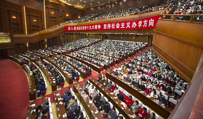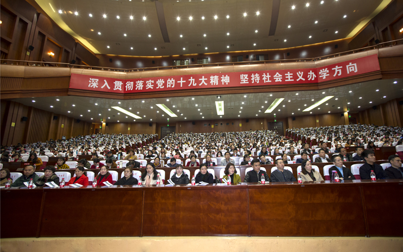 会上,李光宇董事长发表了重要讲话。李光宇先生用了我国传统的鞠躬拜年方式表达了自己对大家诚挚的发自内心的感谢,“有了你们,才有了涉外现在的稳定和将来的发展,谢谢你们!”饱含深情的一句话,获得了全场热烈的掌声。李光宇董事长是我国民办教育促进法修法的深度参与者,本次大会上,他再次强调,民办教育促进法的核心主旨之一是加强党对民办学校的领导,“不管公办民办都是党办,不管体制内还是体制外,执行党的教育方针不例外”。他充分肯定了涉外发展过程中取得的辉煌成果,诠释了民办高校董事会的职权范围,分享了自己对党的十九大精神及习近平新时代中国特色社会主义思想的深刻理解。新常态、新时代、四个意识、四个全面、五位一体、立党为公、两个一百年、中国梦、中华民族伟大复兴等概念,在他的讲解中鲜活生动起来。