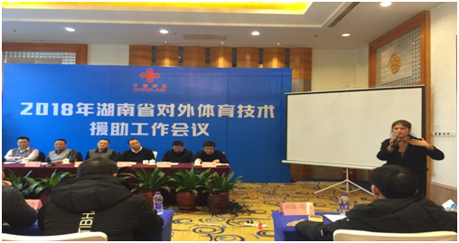 大会上,相关领导回顾了2017年度湖南省对外体育技术援助工作的详细过程和2017年对外体育援助工作在湖南省各单位的通力协作下所取得的骄人业绩,对执行单位与合作单位表示感谢和祝贺,同时介绍了2018年即将展开的对外体育技术援建项目,希望2018年能不忘初心,再接再厉。湖南体育产业集团总经理陈彬在讲话中指出,对外体育技术援助项目是湖南体育产业集团积极响应国家“一带一路”倡议,扩大我省对外体育文化交流的重要举措。“一带一路”是一种战略,是一种愿景,也是促进文化交流的希望之路。因此“一带一路”背景下的体育文化交流与合作,有其重要意义。湖南省对外体育技术援助项目让各位学员深入了解了中国、湖南传统历史文化及经济社会发展成就,为中国、湖南与广大发展中国家在体育、经贸领域的交流合作搭建了平台和桥梁。